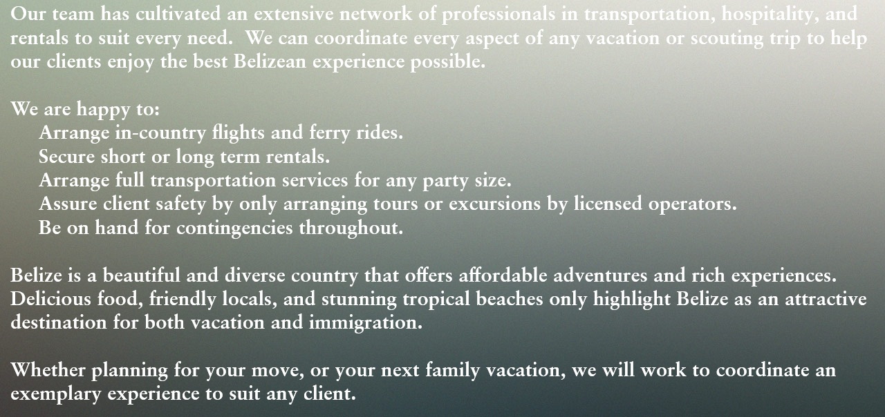 We help coordinate every aspect of your move to Belize. From your first step into the country, until you turn your house key, we work hard to ensure a smooth transition. As a British Commonwealth country, Belize enjoys a very stable social and political climate; and as such, immigration to Belize is affordable, straightforward, and very attractive.